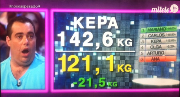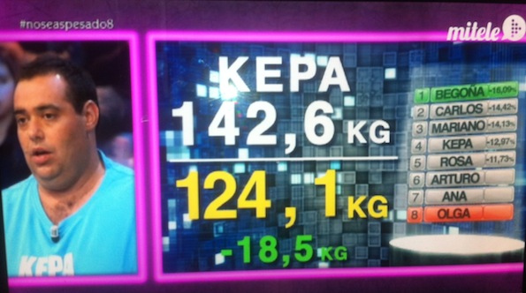 Evolución del peso a lo largo del programa, comence el Miercoles dia 4 de Septiembre de 2013 y pesaba entonces 142,600 Kg. (Total -24,100 Kg)